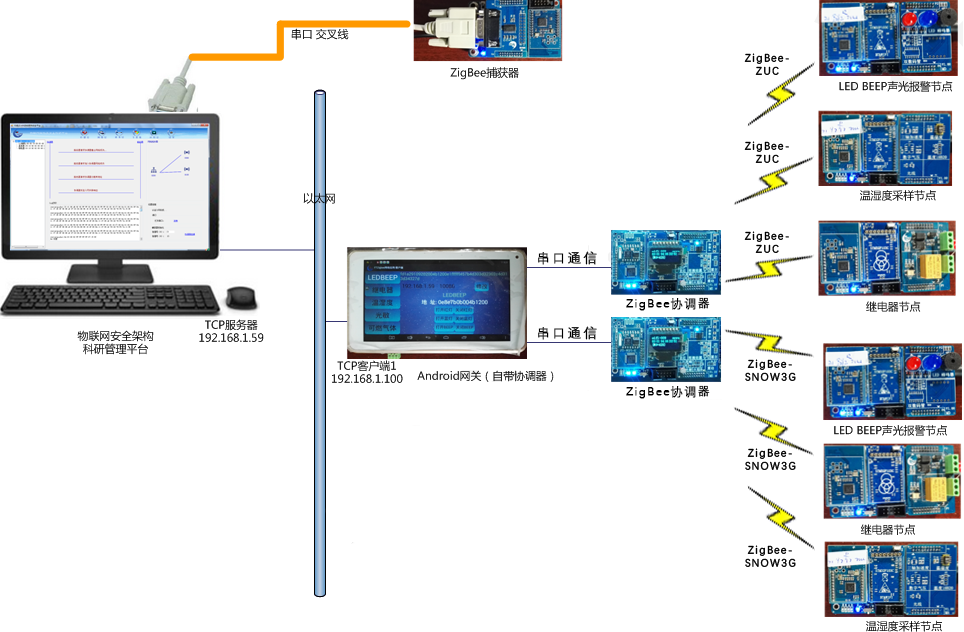 3.感知層包含ZigBee終端設(shè)備:可以配置為加密數(shù)據(jù)傳輸,支持ZUC、Snow 3G、Lblock、Kasumi、AES五種加密算法。支持黑白名單防攻擊。