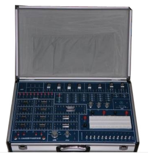 實驗箱采用天空藍(lán)的箱體,內(nèi)部采用一塊厚度為2mm的線路板,通過9個自攻螺絲固定在箱體上,確保線路板可靠的固定在箱體上。線路板通過目前流行的開關(guān)電源供電,帶載能力強(qiáng),并帶有強(qiáng)電隔離和保護(hù)電路。所有的可觀察和可調(diào)試的元器件均分布在線路板的正面,其它的均分布在背面,有利于面板的整潔和方便學(xué)生實驗。