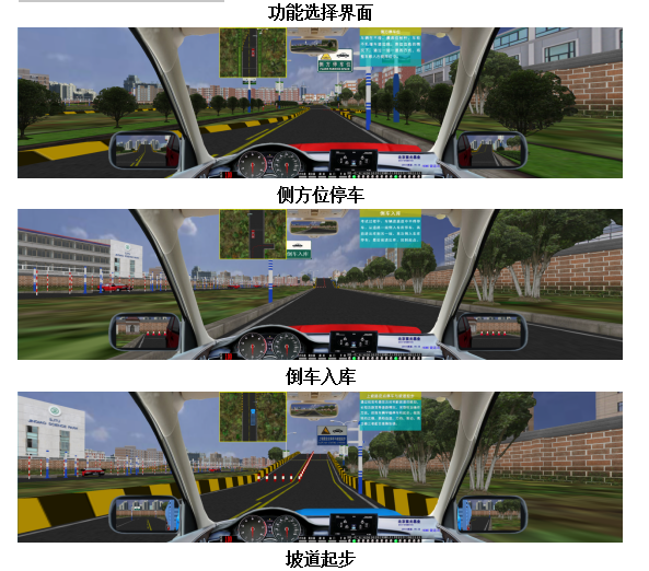 | 新軟件功能:小車(科目二)場(chǎng)地5項(xiàng)分別為:倒車入庫(kù)、坡道定點(diǎn)停車和起步、側(cè)方停車、曲線行駛、直角轉(zhuǎn)彎;大車(科目二)場(chǎng)地16項(xiàng)分別為:樁考、坡道定點(diǎn)停車和起步、側(cè)方停車、通過(guò)單邊橋、曲線行駛、直角轉(zhuǎn)彎、通過(guò)限寬門(mén)、通過(guò)連續(xù)障礙、起伏路行駛、窄路掉頭、模擬高速公路、連續(xù)急彎山區(qū)路、隧道、雨天、霧天濕滑路、緊急情況處置。新版汽車駕駛模擬器軟件道路駕駛技能考試(科目三)內(nèi)容包括:上車準(zhǔn)備(系安全帶)、起步、直線行駛、加減擋位操作、變更車道、靠邊停車、直行通過(guò)路口、路口左轉(zhuǎn)彎、路口右轉(zhuǎn)彎、通過(guò)人行橫道線、通過(guò)學(xué)校區(qū)域、通過(guò)公共汽車站、會(huì)車、超車、掉頭、夜間行駛等訓(xùn)練考試項(xiàng)目。 | ||