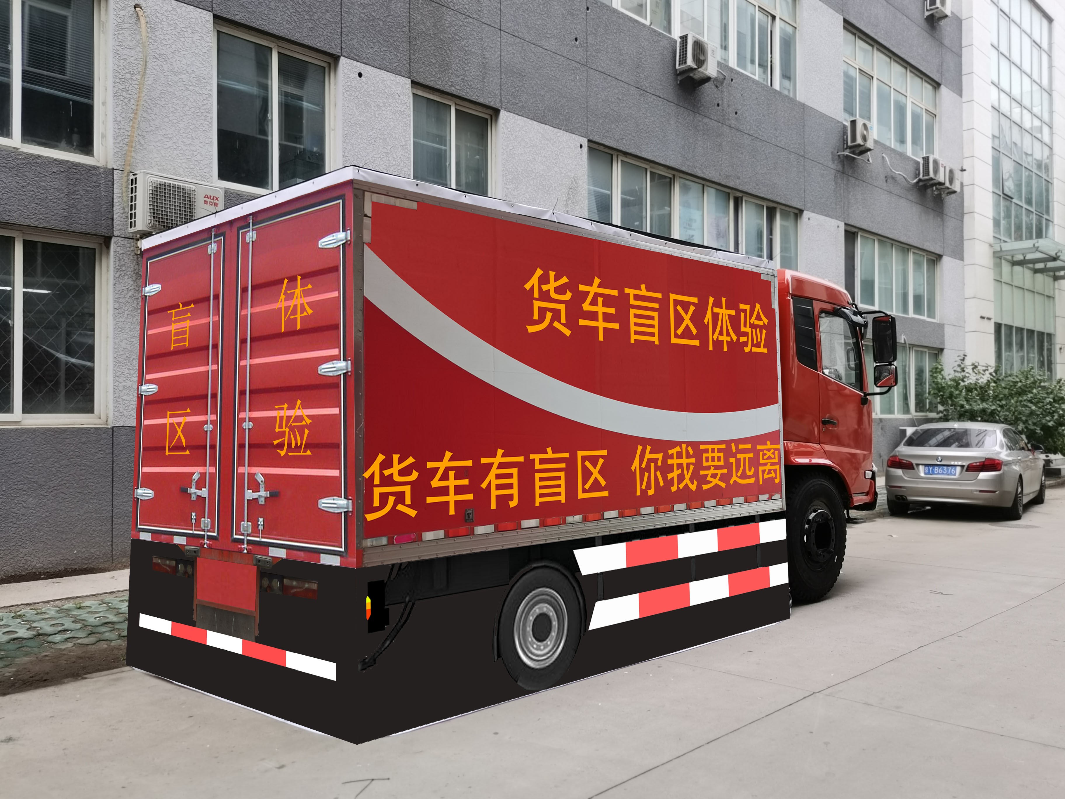 配置:大貨車駕駛室1臺、模擬仿真貨車車廂1個、地面盲區(qū)貼布1套。