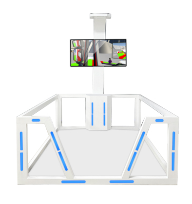 1、包含顯示屏幕、主機、頭戴設備、行走平臺、護欄等。