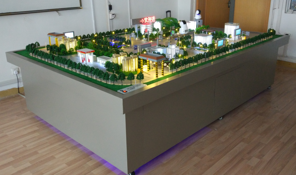 沙盤大小可定制,高度模擬生活中的各類場景:公交系統(tǒng)、紅綠燈 系統(tǒng)、ETC不停車收費系統(tǒng)、智慧社區(qū)、智能停車場、環(huán)境監(jiān)測系統(tǒng)、環(huán)境災害預警系統(tǒng)等等。