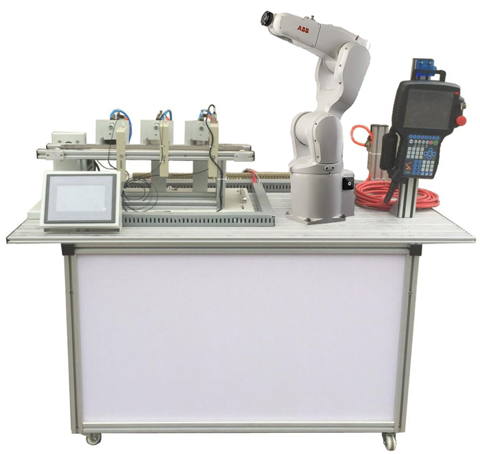 工業(yè)機器人分揀實訓(xùn)系統(tǒng)統(tǒng)在鋁合金導(dǎo)軌式實訓(xùn)臺上安裝有送料、機器人搬運、材料分揀的三個基本工作機構(gòu)單元,構(gòu)成一個典型的自動生產(chǎn)線的機械平臺。系統(tǒng)機構(gòu)采用了氣缸驅(qū)動、變頻器調(diào)速驅(qū)動、直流電機驅(qū)動。系統(tǒng)的控制方式采用了PLC及觸摸屏控制等技術(shù)。工業(yè)機器人分揀實訓(xùn)系統(tǒng)采用模塊組合式的結(jié)構(gòu),各工作單元是相對獨立的模塊,并采用了標(biāo)準(zhǔn)結(jié)構(gòu)和抽屜式模塊,具有較強的互換性。