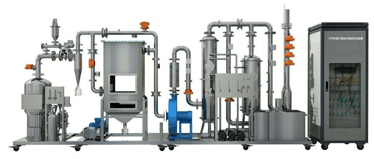 大氣環(huán)境工程技術綜合實訓裝置主要由煙氣發(fā)生系統(tǒng)、煙氣處理系統(tǒng)、電氣控制系統(tǒng)以及煙氣監(jiān)測系統(tǒng)等四部分組成。