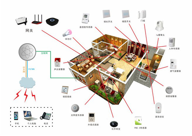 5、智能家居網(wǎng)關(guān):智能家居網(wǎng)關(guān)作為整體系統(tǒng)的核心設(shè)備,建立zigbee無(wú)線網(wǎng)絡(luò),與各個(gè)智能終端相連,運(yùn)行在手機(jī)端的管理軟件向智能家居網(wǎng)關(guān)發(fā)送命令可統(tǒng)一管理各傳感器與窗簾電機(jī)、家用電器、燈光系統(tǒng)等設(shè)備。軟件把傳感器與電器聯(lián)系起來(lái),使之成為一個(gè)整體,互相影響,互相協(xié)作運(yùn)行,實(shí)現(xiàn)對(duì)家居電器的自動(dòng)化管理、安防自動(dòng)化等功能。軟件提供遠(yuǎn)程服務(wù),用戶通過(guò)軟件可實(shí)施遠(yuǎn)程控制家電,并實(shí)現(xiàn)遠(yuǎn)程監(jiān)控。