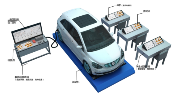 2.檢測操作臺通過便捷測量盒組件是以整車為基礎(chǔ),在不破壞原車電路情況下,可以輕松的串聯(lián)在控制模塊和原車線束之間;通過裝有與原車插頭配套插接器的線束,連接故障設(shè)置終端,故障設(shè)置終端通過專用線束連接檢測臺,實現(xiàn)整車各系統(tǒng)電路教學(xué)、實訓(xùn)考核的多功能教學(xué)設(shè)備;