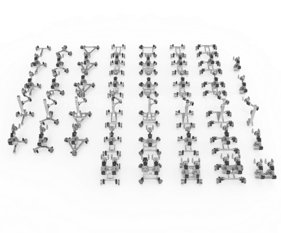 ※1.機(jī)器人構(gòu)型:可以完成不少于8種典型底盤、6種典型機(jī)械臂、不少于45種典型具身復(fù)合機(jī)器人。 1.1典型具身底盤 8種:后雙驅(qū)四輪差速底盤、雙驅(qū)六輪差速底盤、三輪福...