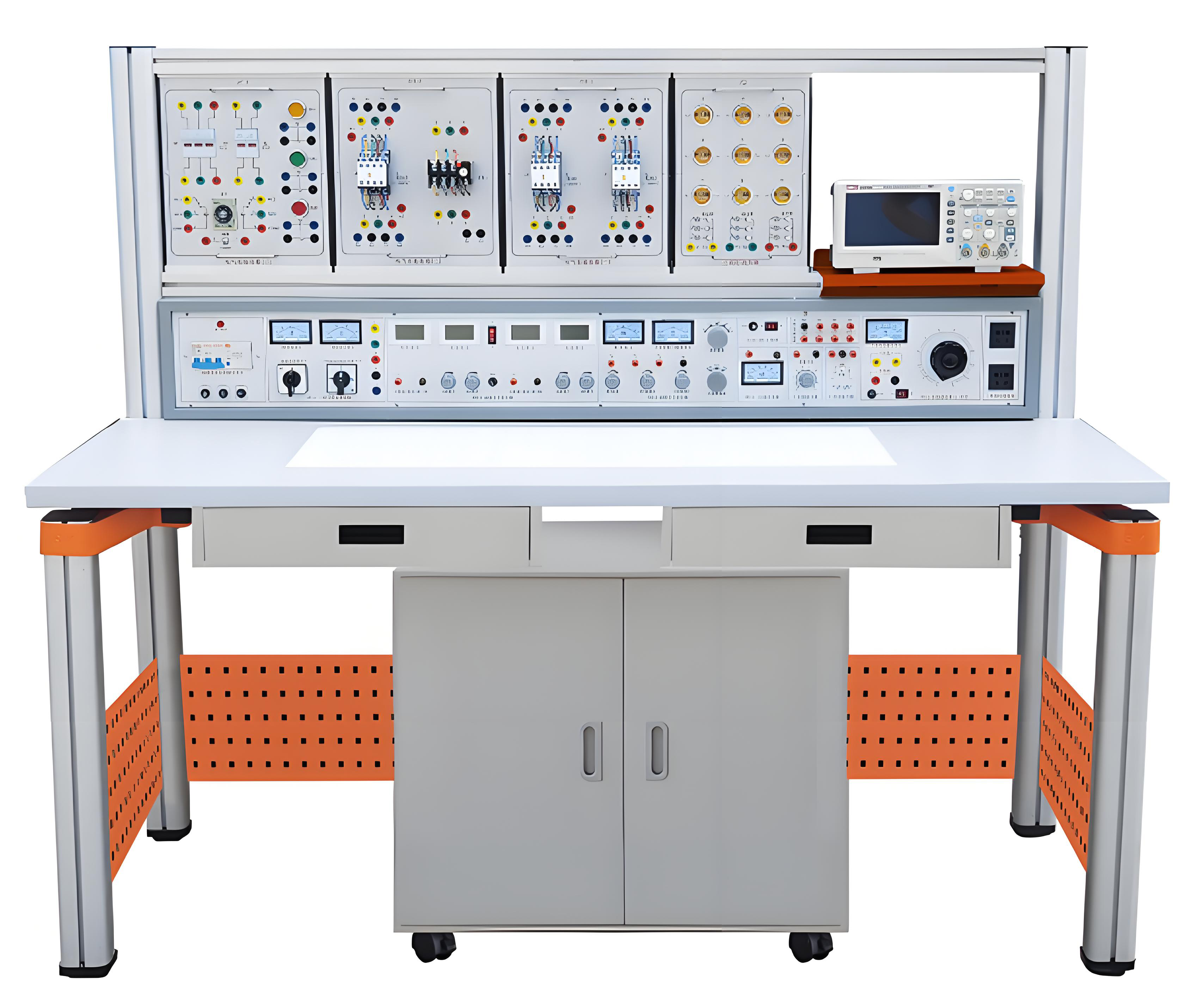 本電工電子實驗臺主要由實訓屏、實訓掛箱、實訓桌等到組成。