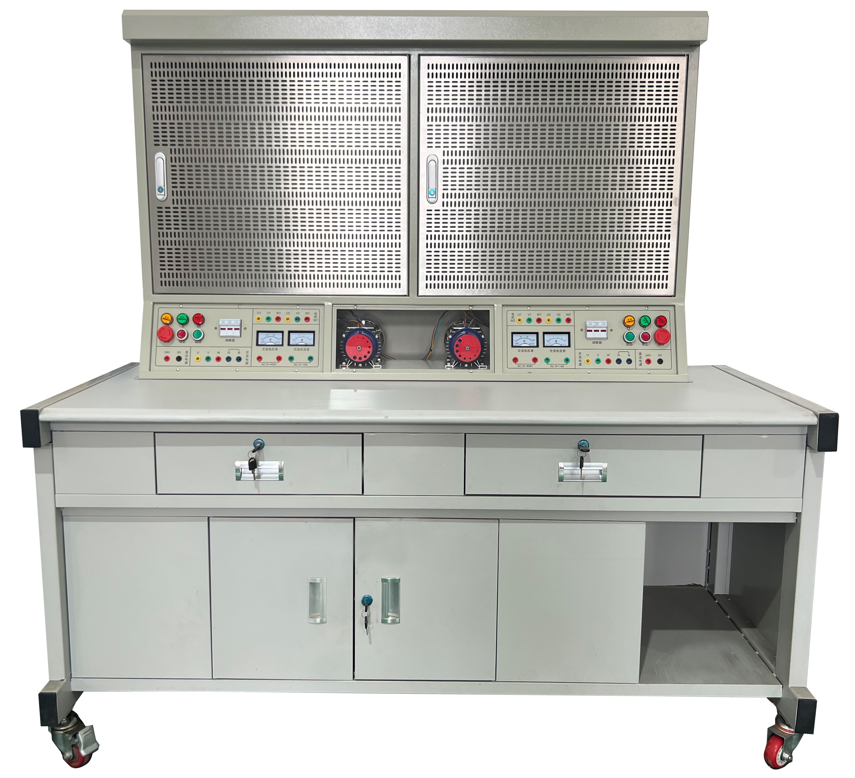 2、每組提供線電壓380V或相電壓220V兩種電源,單相電源插座、線電壓輸入指示表。