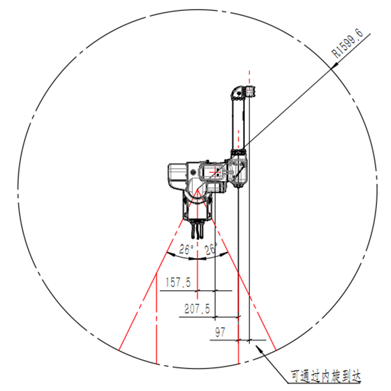 4、臂長更大、負(fù)載能力更強(qiáng):通過輕量化的設(shè)計(jì),使用高速電機(jī)、高精度的減速器,使機(jī)器人臂長增加至1599.6mm,額定負(fù)載16kg,可偏心80mm。