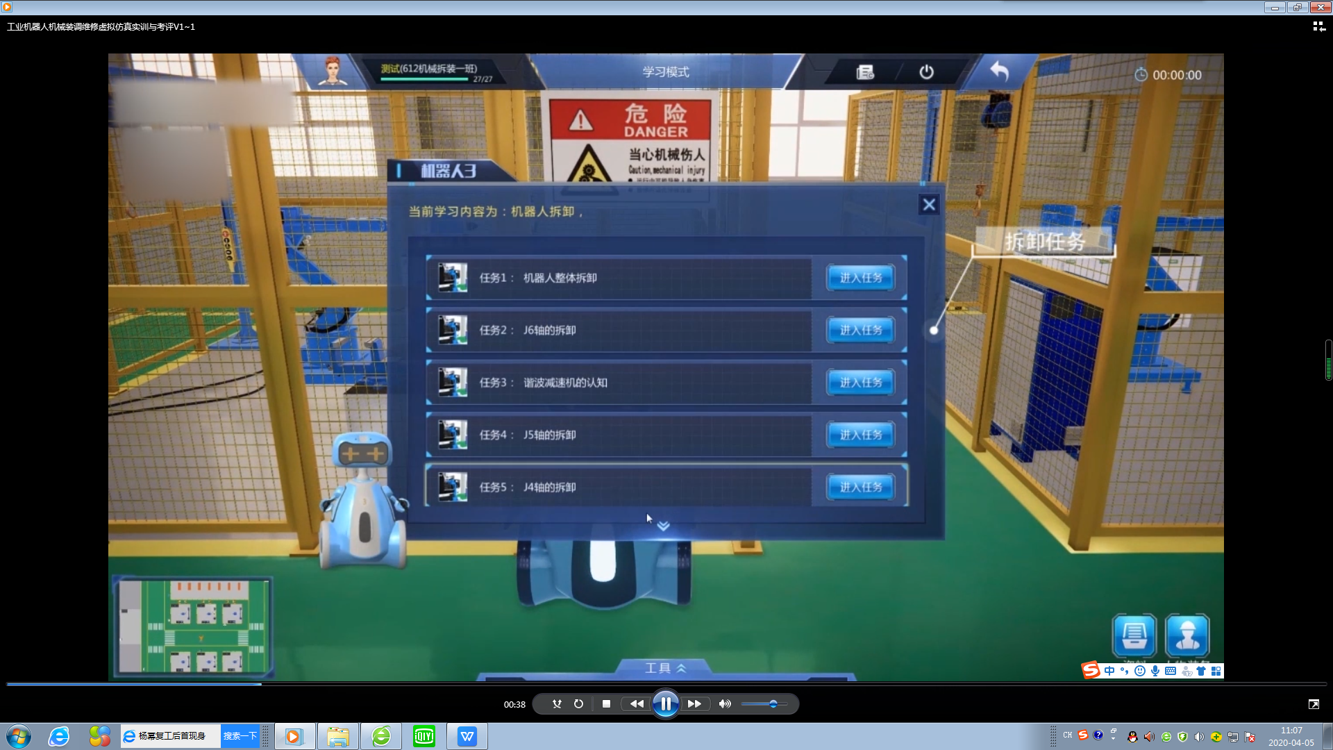 4、學(xué)習(xí)模式教學(xué)實(shí)訓(xùn)任務(wù)豐富:機(jī)器人拆裝作業(yè)準(zhǔn)備虛擬仿真實(shí)訓(xùn)項(xiàng)目包含拆裝作業(yè)防護(hù)準(zhǔn)備、機(jī)器人拆裝工具認(rèn)知、機(jī)器人拆卸作業(yè)準(zhǔn)備等至少3個(gè)教學(xué)實(shí)訓(xùn)任務(wù);機(jī)器人本體拆卸虛擬仿真實(shí)訓(xùn)項(xiàng)目包含機(jī)器人整體拆卸、機(jī)器人J6軸到J1軸的分步拆卸、諧波減速機(jī)的認(rèn)知、RV減速機(jī)的認(rèn)知等至少9個(gè)教學(xué)實(shí)訓(xùn)任務(wù);機(jī)器人本體安裝虛擬仿真實(shí)訓(xùn)項(xiàng)目包含機(jī)器人整體安裝、機(jī)器人J1軸到J6軸的分步安裝、機(jī)器人注油、軸承的認(rèn)知、軸的初步認(rèn)知等至少少10個(gè)教學(xué)實(shí)訓(xùn)任務(wù)。機(jī)器人初步調(diào)試項(xiàng)目包含調(diào)試前準(zhǔn)備、機(jī)器人開(kāi)機(jī)、機(jī)器人關(guān)機(jī)、機(jī)器人基礎(chǔ)調(diào)試、機(jī)器人精度檢測(cè)等至少5個(gè)教學(xué)實(shí)訓(xùn)任務(wù)。