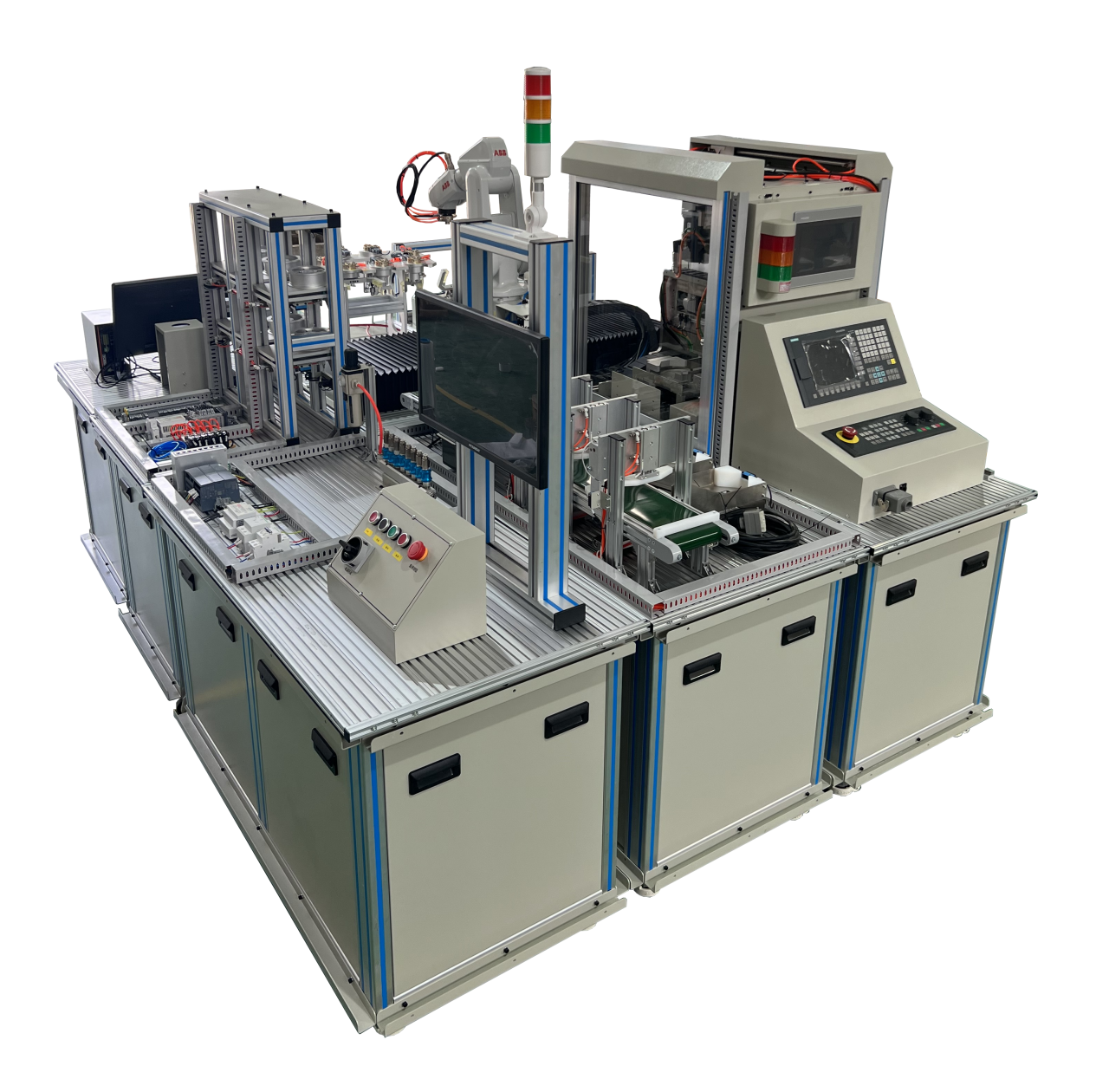 LG-ISFTP03型 智能制造單元系統(tǒng)集成應(yīng)用平臺能完成工業(yè)機(jī)器人與 PLC 控制的綜合實(shí)訓(xùn),采用模塊化組裝,方便教師教學(xué), 可以實(shí)現(xiàn)工業(yè)機(jī)器人的基本操作,同時(shí)實(shí)現(xiàn)工業(yè)機(jī)器人搬運(yùn)、碼垛、裝配、涂膠、數(shù)控機(jī)床上下料等典型任務(wù),還可以完成視覺檢測,PLC 編程,通信、工控組態(tài)等自動(dòng)化控制項(xiàng)目;可以完成工作站系統(tǒng)故障診斷及常見故障排除、工作站系統(tǒng)方案設(shè)計(jì)等綜合實(shí)訓(xùn)項(xiàng)目。