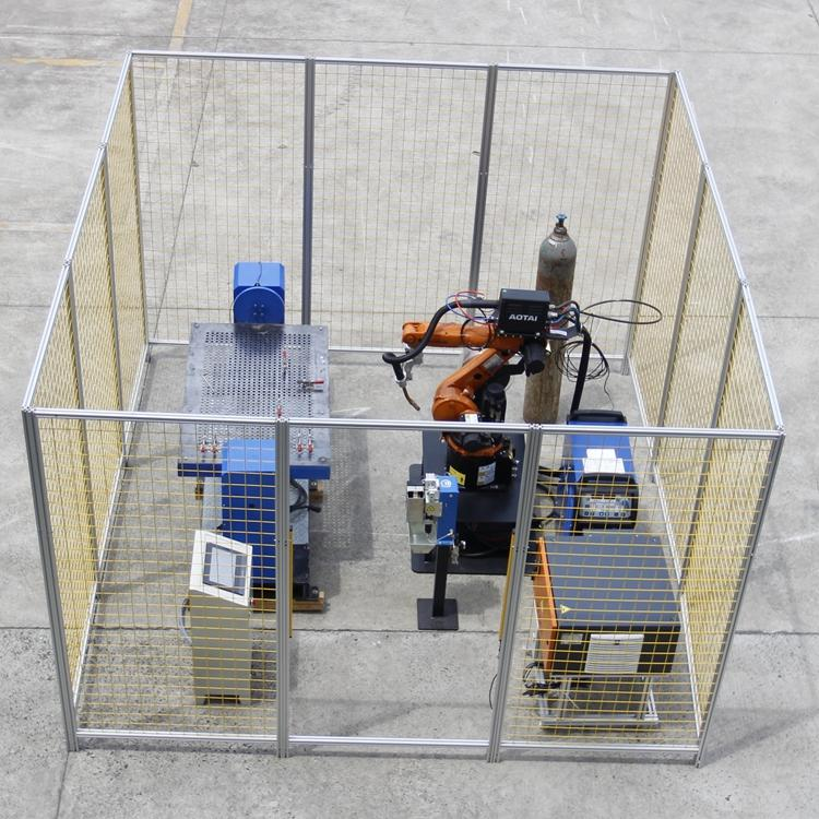 2、該工業(yè)機(jī)器人弧焊實訓(xùn)工作站由工業(yè)機(jī)器人、焊接電源、送絲機(jī)、焊槍、清槍剪絲站、變位機(jī)及工裝夾具、工業(yè)除煙除塵凈化器、安全防護(hù)組件及配套設(shè)備構(gòu)成,是利用工業(yè)機(jī)器人這一柔性執(zhí)行單元,結(jié)合氣體焊工藝實現(xiàn)的實際加工單元,可以完成對板型、管型等零件的焊接加工。在學(xué)生充分學(xué)習(xí)工業(yè)機(jī)器人基礎(chǔ)操作后,完全掌握參數(shù)設(shè)置、軌跡編程等技能基礎(chǔ)上,結(jié)合焊接工藝完成與真實工廠應(yīng)用相同的實訓(xùn)項目,了解焊接工作站的構(gòu)成及維護(hù),縮短崗前培訓(xùn)過程,提高就業(yè)競爭力。