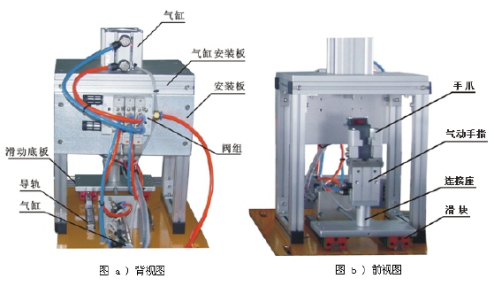 該配置配有多種類型的氣缸、電磁閥,磁性開關,如:單出桿氣缸、單出雙桿氣缸、旋轉氣缸等氣動執(zhí)行元件、單控電磁閥、雙控電磁閥和磁性開關等,基于這些氣動控制元件,可完成下列氣動技術的安裝調(diào)試訓練任務: