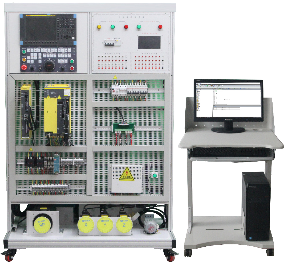 1.電氣控制平臺采用鋁合金型材、網(wǎng)孔板開放式設(shè)計,立式結(jié)構(gòu),符合真實的數(shù)控電氣安裝環(huán)境,主要由數(shù)控系統(tǒng)、進給驅(qū)動、主軸單元、PMC單元、冷卻控制電路、接口單元、保護電路、電源電路等組成。該單元包含完整的數(shù)控銑床電氣控制部分,以及接口轉(zhuǎn)換單元。