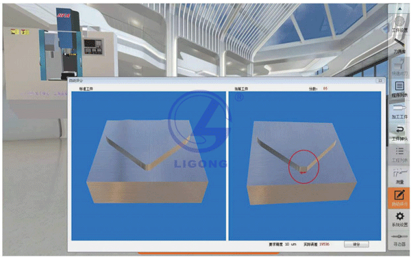 7、能夠進(jìn)行數(shù)控系統(tǒng)的數(shù)字孿生虛實(shí)融合實(shí)訓(xùn)操作和考核, 系統(tǒng)支持對加工結(jié)果進(jìn)行自動評分。