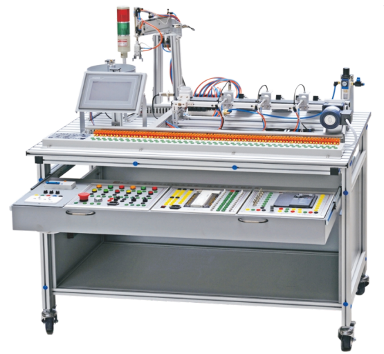 本設(shè)備主要包括實(shí)訓(xùn)臺(tái)架、典型的機(jī)電一體化設(shè)備的機(jī)械部件、PLC模塊、變頻器模塊、按鈕模塊、電源模塊、模擬生產(chǎn)設(shè)備實(shí)訓(xùn)模塊、接線端子排和各種傳感器等組成。整體結(jié)構(gòu)采用開放式和拆裝式,實(shí)訓(xùn)裝置用于機(jī)械部件組裝,可根據(jù)現(xiàn)有的機(jī)械部件組裝生產(chǎn)設(shè)備,也可添加機(jī)械部件組裝其他生產(chǎn)設(shè)備,使整個(gè)裝置能夠靈活的按教學(xué)或競(jìng)賽要求組裝具有生產(chǎn)功能的機(jī)電一體化設(shè)備。