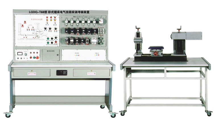 LGDQ-T68 臥式鏜床電氣技能實(shí)訓(xùn)考核裝置(半實(shí)物)由電源控制部分、機(jī)床電氣控制部分、半仿真機(jī)床實(shí)物部分構(gòu)成。電源控制部分包括實(shí)訓(xùn)定時(shí)、定時(shí)報(bào)警、安全用電自動(dòng)控制等,機(jī)床電氣控制部分把整臺(tái)機(jī)床內(nèi)部電器裝在正面面板上,能直觀地觀察機(jī)床工作時(shí)各電器的動(dòng)作狀況。故障點(diǎn)在面板上設(shè)有相應(yīng)測(cè)試點(diǎn),供實(shí)訓(xùn)考核者測(cè)試用。仿真機(jī)床部分能模擬機(jī)床各種運(yùn)動(dòng)。通過臥式鏜床電氣技能實(shí)訓(xùn)考核裝置的實(shí)訓(xùn)能使學(xué)員掌握機(jī)床常見故障的現(xiàn)象、故障產(chǎn)生的大概部位,熟練掌握機(jī)床電路工作原理,其是維修電工初、中、高級(jí)技能鑒定的理想實(shí)訓(xùn)設(shè)備。
