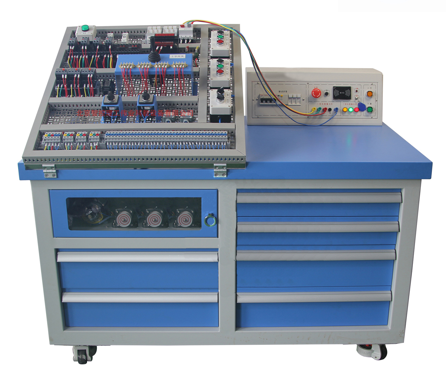 實(shí)訓(xùn)裝置主要由實(shí)訓(xùn)桌、智能電源控制屏、電氣網(wǎng)孔板、電器元件與電氣線路檢測(cè)系統(tǒng)等組成。