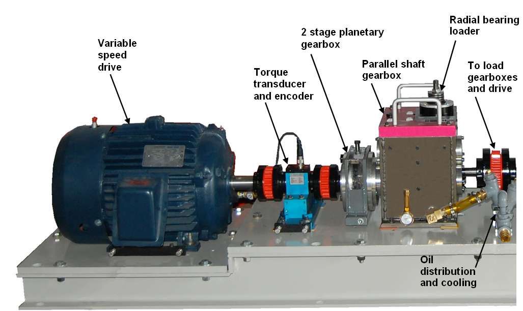 - 兩個(gè)并??列的平行軸齒輪箱與更大的負(fù)載容量比試驗(yàn)變速箱;一個(gè)齒輪箱具有兩個(gè)階段的增速器,一個(gè)變速箱有三個(gè)階段增速