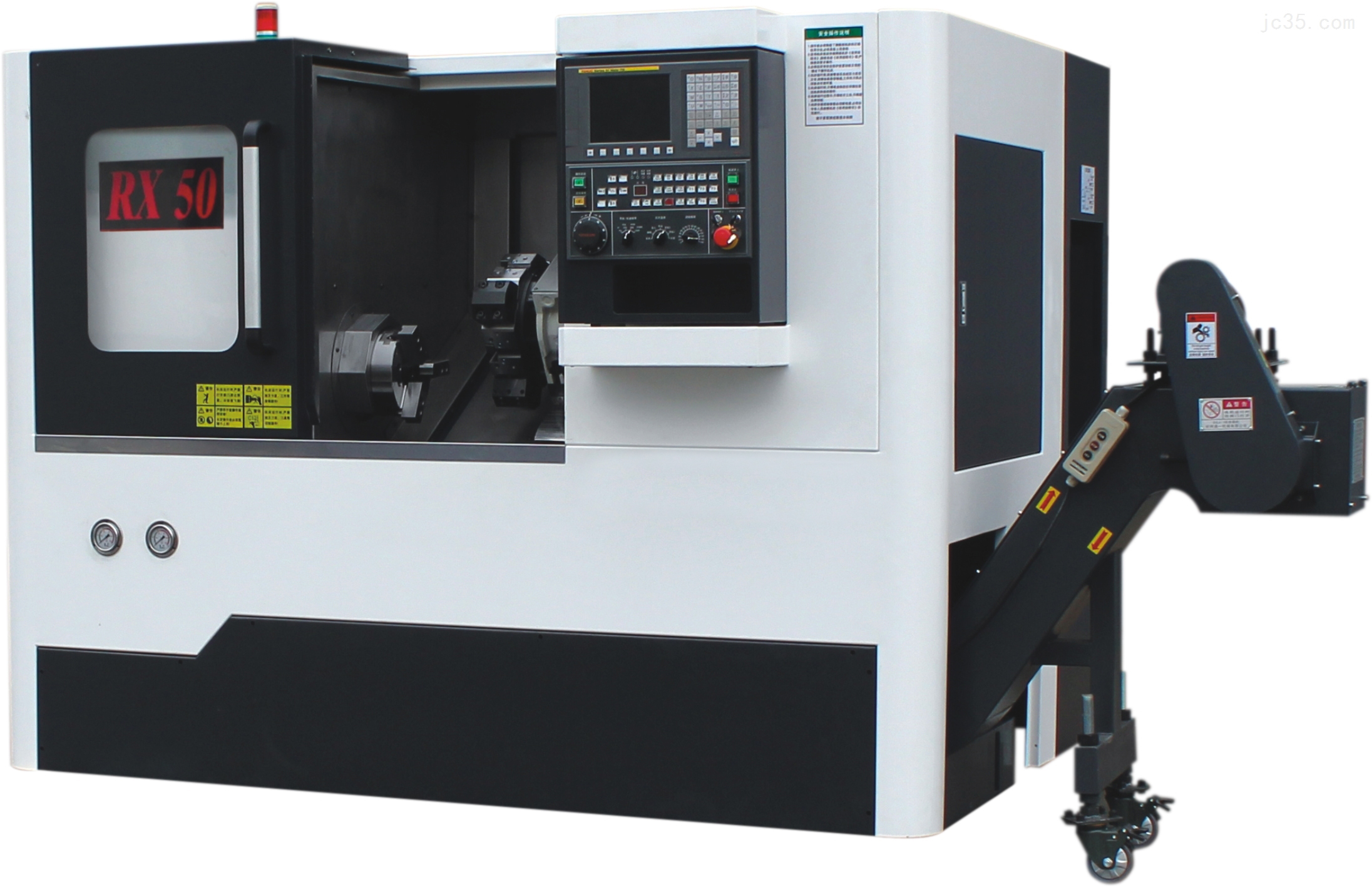 LGX-RX50型 高精度斜床身數(shù)控車床雙坐標兩軸聯(lián)動,半閉環(huán)控制數(shù)控車床。主機采用整體45°斜床身結構布置,高精度直線導軌,滾珠絲杠驅動。動態(tài)特性好,精度高,剛性強。防護采用全封閉防護,標配自動排屑器,排屑性能好。