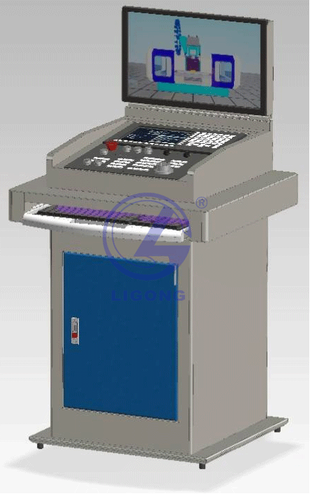 2、實(shí)訓(xùn)平臺整體采用1.2mm鈑金工藝制作,下部有貯存空間用于安放電腦主機(jī),中部安裝有鍵盤抽屜,抽屜上部平臺安裝數(shù)控操作系統(tǒng),平臺整體采用鐵質(zhì)亞光密紋噴塑結(jié)構(gòu)。