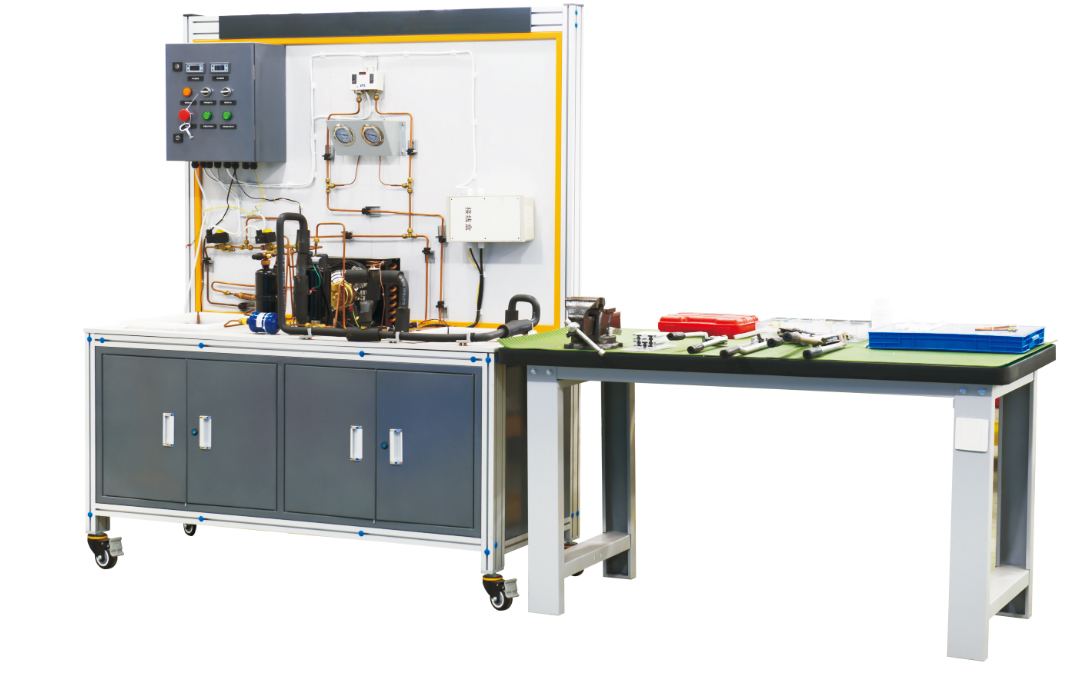 該裝置基于世界技能大賽的基本要求,著重提高學員的職業(yè)素養(yǎng),提供一個實訓平臺,由學生進行制冷系統(tǒng)的基本設計、安裝、調(diào)試及維修等實訓。該裝置能全面的實訓學生的綜合能力,其技能包括:系統(tǒng)設計技能,管工技能,焊工技能,電工技能,壓力測試、抽真空、真空測試、制冷劑測試及加注、電氣測試技能、制冷設備調(diào)試技能。還包括了制冷系統(tǒng)調(diào)試運行的全部步驟,能滿足實訓教學、實際工程訓練及職業(yè)技能競賽的要求。