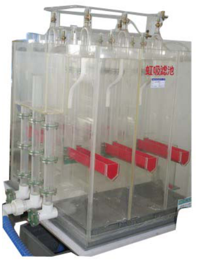 2. 虹吸濾池為透明有機(jī)玻璃制造,可觀察污水在各腔室內(nèi)的運(yùn)行情況。