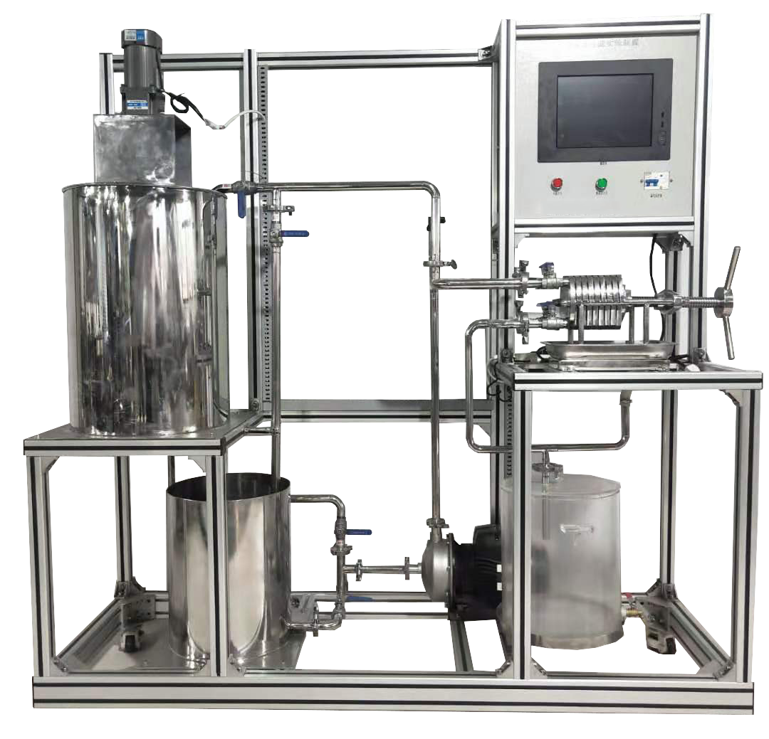 4、該實驗裝置是由過濾板、過濾框組成的小型工業(yè)用不銹鋼板框過濾機,能完整地體現(xiàn)了板框壓濾機的構(gòu)造和操作流程,采用氣動配料、氣動攪拌加壓技術(shù),用空氣將物料注入過濾機,工程化概念強。