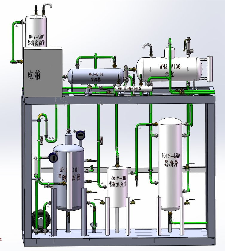 一、裝置特色 整套裝置由鋼制安裝框架、甲醇計量槽、甲醇汽化器、氣體混合器、氧化器、仿真儀表、就地計算機操作臺、、就地智能儀表控制上位監(jiān)控軟件、外置配套...