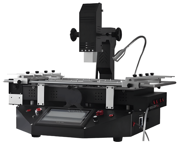 4、電路板固定到支架以后,支架可以前后整體移動,即使加熱過程中,也可以調整電路板前后移動,確保芯片與上下風嘴同時對齊。