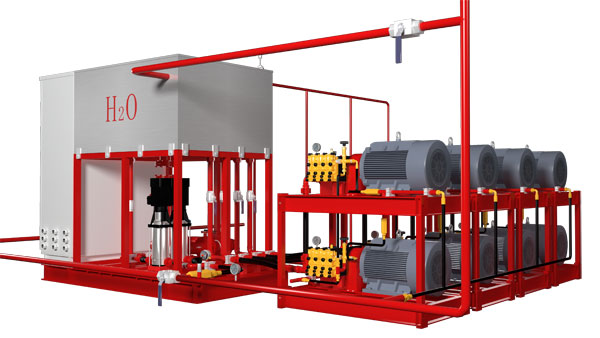 2、細(xì)水霧滅火的關(guān)鍵是減小霧滴直徑以增加與周圍空氣接觸的表面積。相同體積的水霧化成微水顆粒后表面積將會(huì)激增。而表面積的增大,使霧滴更容易吸熱,有助于實(shí)現(xiàn)降溫滅火。吸熱后的霧滴極易汽化,汽化后的體積增大約為1700倍,有效稀釋了火焰附近氧氣的濃度,從而使燃燒反應(yīng)不能繼續(xù)。霧滴的重量輕,不會(huì)馬上吸附到地面,而是隨著氣流再次飛揚(yáng)在空中,增加了空氣中霧滴的密度和分布均勻性。同時(shí)控制熱輻射,防止火災(zāi)蔓延。