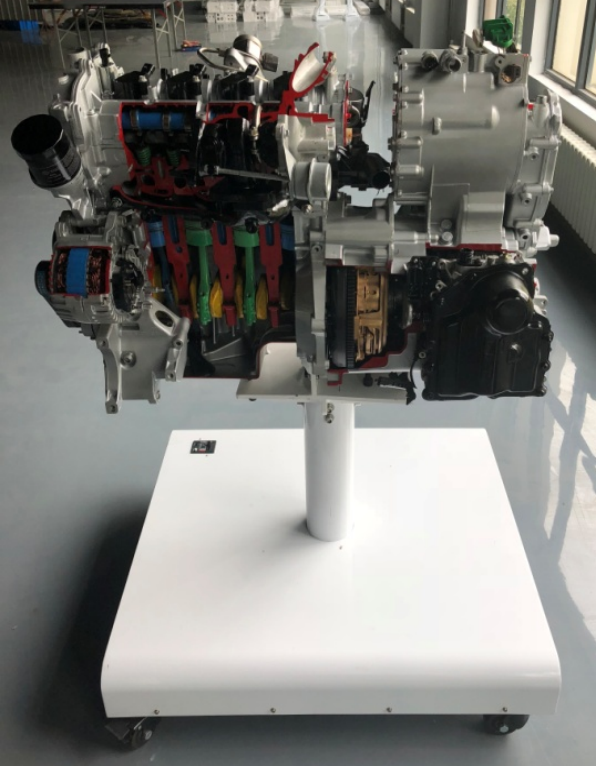 LGE-HDJP01型 新能源汽車(chē)混合動(dòng)力解剖臺(tái)以原廠汽車(chē)油電混合動(dòng)力系統(tǒng)總成實(shí)物為基礎(chǔ),選用原裝全新混合動(dòng)力汽車(chē)動(dòng)力系統(tǒng),發(fā)動(dòng)機(jī)、驅(qū)動(dòng)電機(jī)、雙離合變速箱透明解剖;真實(shí)地呈現(xiàn)了動(dòng)力系統(tǒng)核心零部件之間的連接控制關(guān)系、安裝位置。適用于各類(lèi)型院校及培訓(xùn)機(jī)構(gòu)對(duì)汽車(chē)油電混合動(dòng)力系統(tǒng)結(jié)構(gòu)理論和維修實(shí)訓(xùn)的實(shí)訓(xùn)教學(xué)需要。