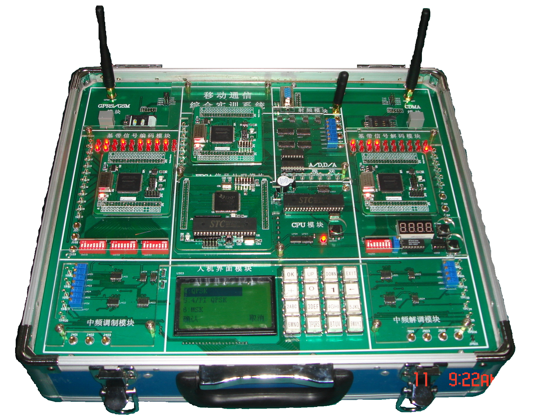 本移動通信實驗箱由主底板加ARM、FPGA、GPRS/CDMA、交換接口、傳感器等五個獨立的模塊有機的組合而成,是集移動終端、基站、交換機、傳感器網(wǎng)絡(luò)功能于一體的移動通信系統(tǒng)。該移動通信實驗箱系統(tǒng)二次開發(fā)功能強大,可做設(shè)計性、應用性、研究性實驗,有利于培養(yǎng)學生的動手能力。