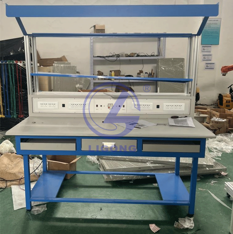 1、實(shí)訓(xùn)臺(tái):采用工業(yè)鋁合金型材框架,共兩層,其中第一層可放置維修工具、套件、儀器儀表;第二層可放顯示器,頂部設(shè)有30W日光燈一盞和風(fēng)扇一臺(tái)。實(shí)訓(xùn)臺(tái)設(shè)有一個(gè)抽屜、兩個(gè)鍵盤(pán)托架、兩個(gè)主機(jī)柜,下方有四個(gè)剎車(chē)的萬(wàn)向輪。