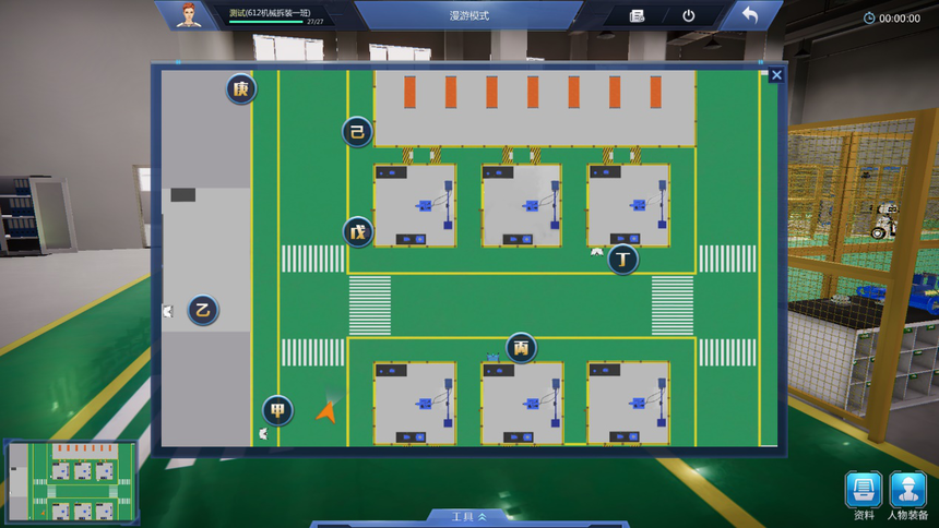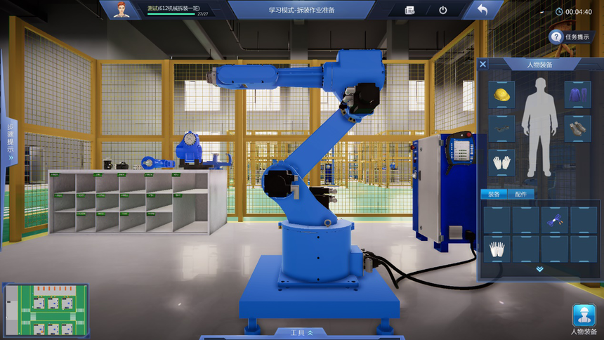 9、友好操作體驗(yàn)設(shè)計(jì):設(shè)置專用工具欄,可以通過工具欄中的快捷鍵快速選擇工具,提高實(shí)訓(xùn)系統(tǒng)使用效率,同時(shí)加深對工具的認(rèn)識。地圖及快速跳轉(zhuǎn)、箭頭指示多形式導(dǎo)航,通過小地圖實(shí)現(xiàn)快速跳轉(zhuǎn)到機(jī)器人NPC獲得指引。地標(biāo)指引箭頭,有效提示下一任務(wù)的操作位置。