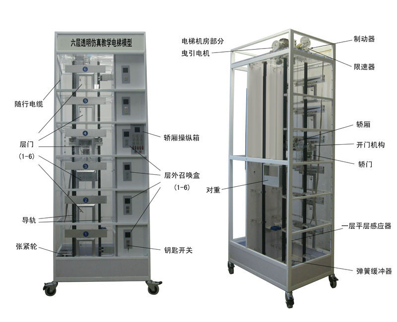 透明電梯實訓裝置(六層、仿真實物)是為了配合各大院校、職業(yè)技術(shù)學院、技師學院、技校、勞動就業(yè)培訓中心、質(zhì)量技術(shù)監(jiān)督局特檢中心、電梯維修物業(yè)管理部門等有關電梯專業(yè)和工業(yè)自動化專業(yè)課程實驗演示,使更多的人能夠更好地了解電梯、使用電梯,培養(yǎng)出更多的電梯專業(yè)人才,適應電梯行業(yè)的發(fā)展需要,我公司經(jīng)過深入探索研究,精心設計的。