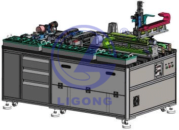 機(jī)架結(jié)構(gòu)采用鋁型材搭建,配地腳滾輪,警示燈,按鈕 控制盒,電氣元件安裝板采用可抽拉結(jié)構(gòu)。尺寸:(長(zhǎng)寬高)1850×1050×850mm。